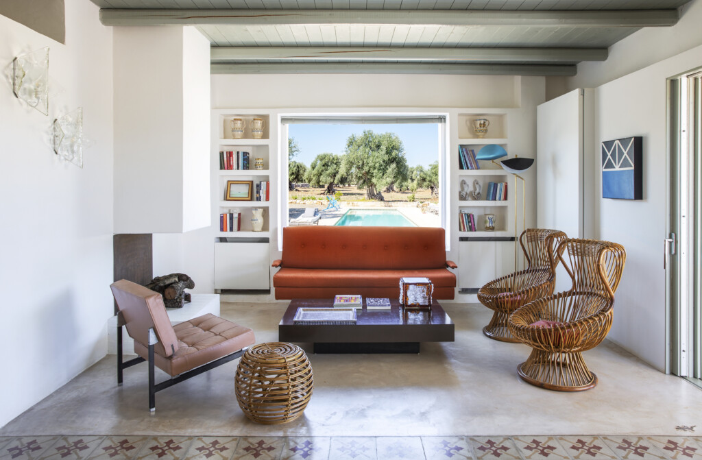 Bari, 2020 Decor and Forniture a cura di Stefano Straziota Misia Arte Spazio - Foto di Giorgio Baroni Una dimora unica nel suo genere, immersa in una cornice suggestiva quale la valle D'Itria, mostra come in uno spazio primordiale si possa dare vita ad un nuovo corso. Un progetto suggestivo dove con gli arredi si è cercato di adornare senza invadere i delicatissimi equilibri desiderati dall'eclettico proprietario. L' ipogeo con un carico di quasi duemila anni di storia, ulivi secolari, carrubi sono la cornice magnifica che ha ispirato lo spazio, ogni situazione è studiata per non apparire bensì disapparire, una scelta in controtendenza con l'orientamento attuale. Un salottino in canna d'india anni 60 restaurato con tessuti naturali