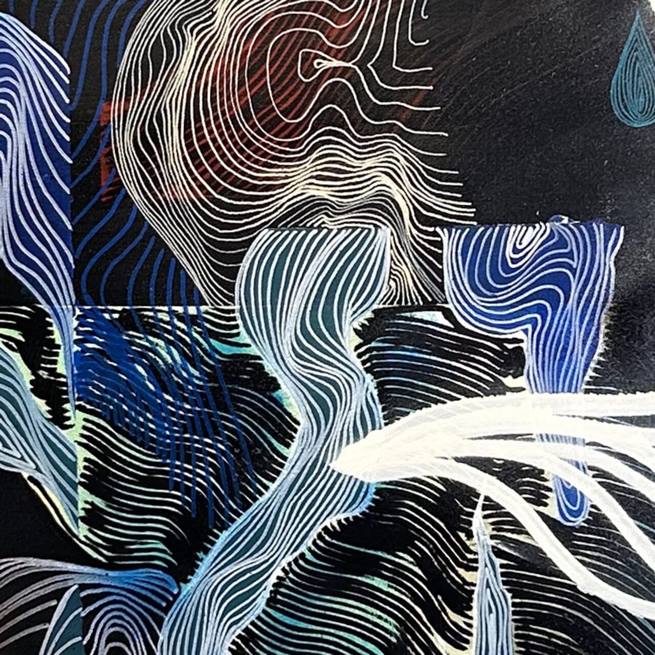 Del vulcano possiede la caratteristica forza, tremenda e irresistibile. La linea di Awer non è più segno, ma come la lava, come il ghiaccio, diventa sensazione, striscia continuamente, risucchia lo sguardo conducendolo attraverso una danza senza sosta in spazi nuovi fatti di scintillii, spirali e vortici.