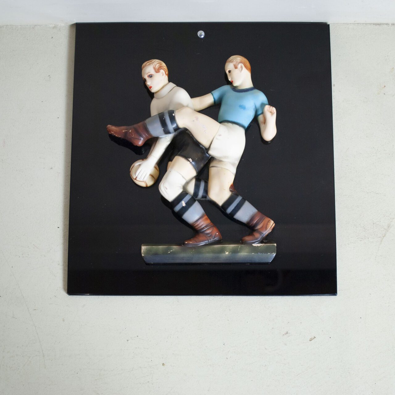 Bassorilievo in ceramica raffigurante calciatori produzione LENCI a firma Enrica Robecchi anni 30.