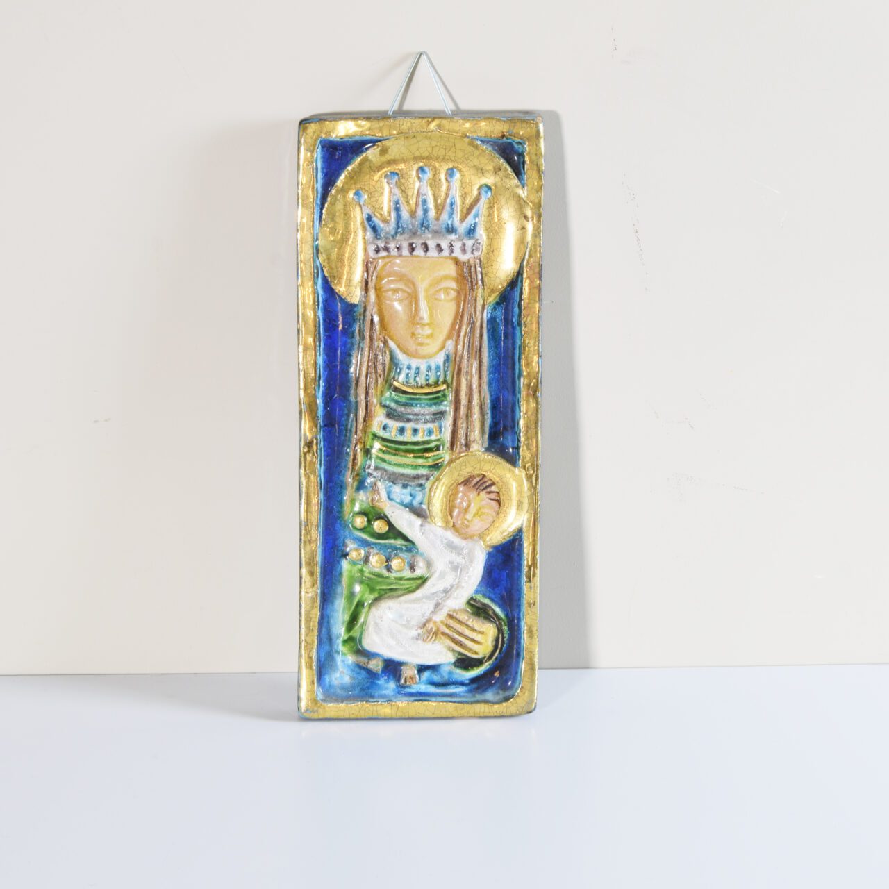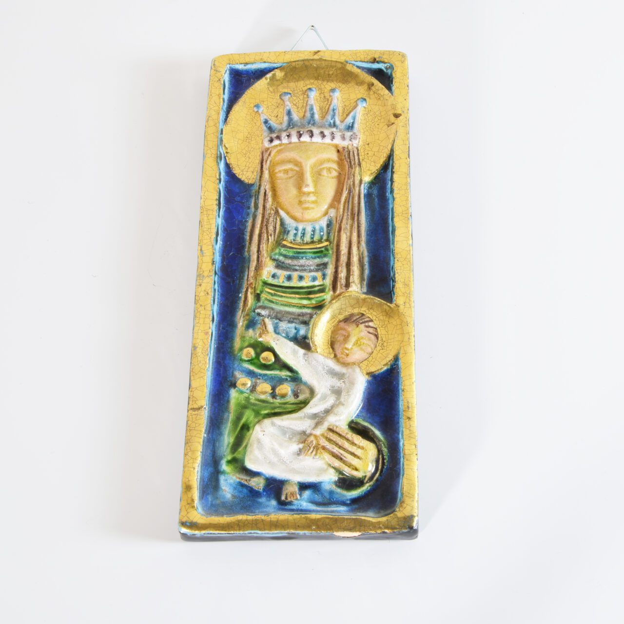 San Polo Venice bas-relief in third-firing glazed ceramic, representing the nativity with the Madonna and Jesus.